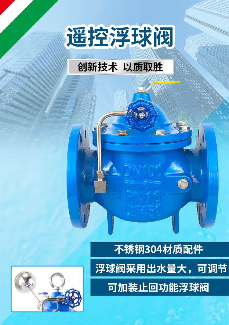 應用領域:100X遙控浮球閥水箱水塔補水閥球墨鑄鐵304不銹鋼自動水位控制閥